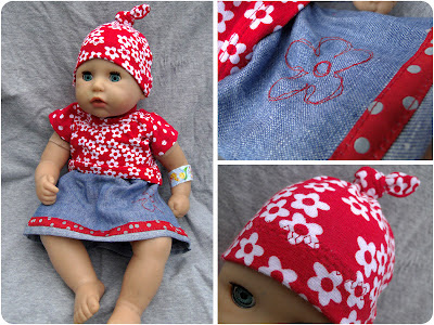 Puppe Nr. 1 bekam eine Hose mit passendem Shirt und Mütze, Puppe Nummer 2 ein neues Shirt, Mütze und Rock.