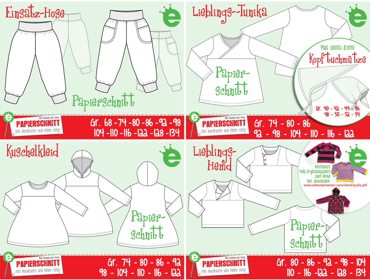 alles über meine Schnittmuster, Einsatz-Hose, Kuschelkleid, Lieblingshemd, Lieblingstunika