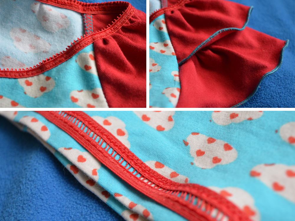 Eigentlich sollte vorne noch ein Herz drauf, oder ein Wolke – das hab ich dann aber doch weggelassen und lieber das ungefaltete Gummiband am Saum angenäht.