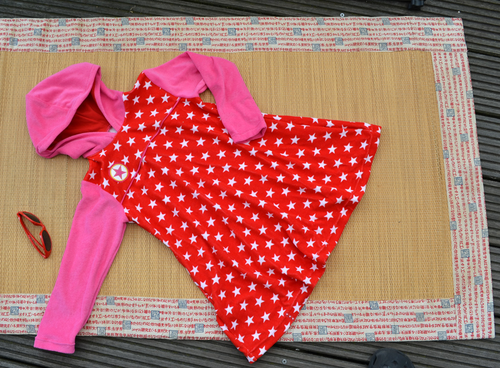 Bitte kein undehnbares Frottee wie z.B. Handtuchfrottee verwenden, damit wirds leider nix mit dem Kuschelkleid.