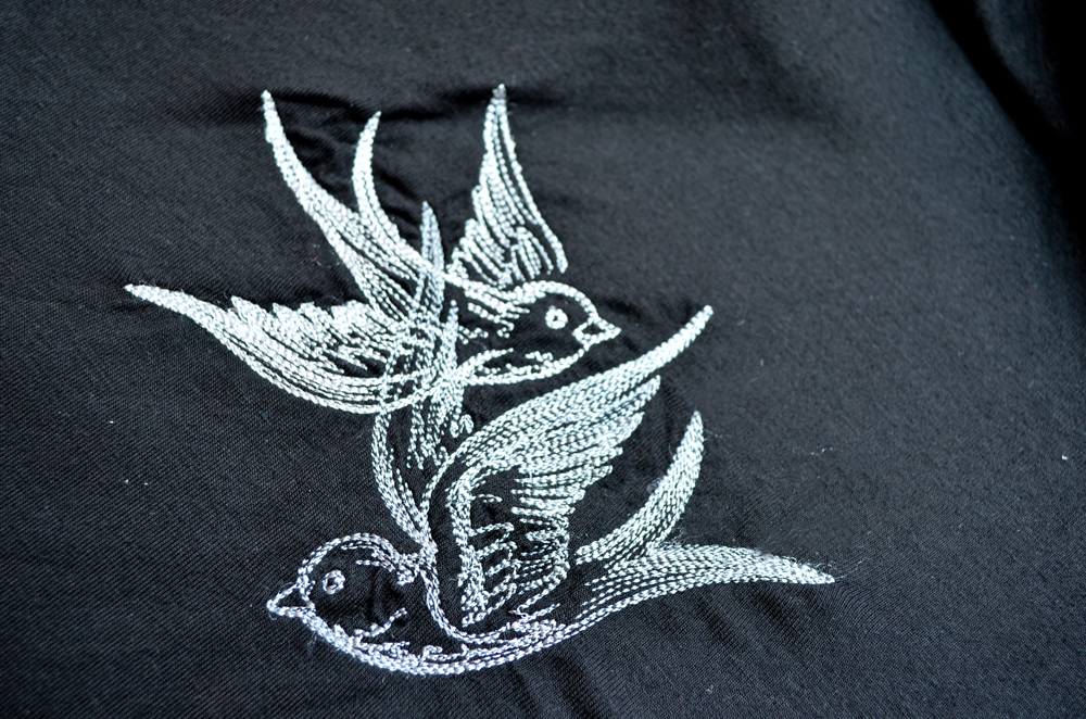 Bestickt mit Schwälbchen von Urban Threads.