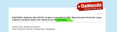 – Ihr findet eure Bestellnummer zum einen in der Bestätigungsmail, die ihr von DaWanda zu eurer Bestellung bekommt: