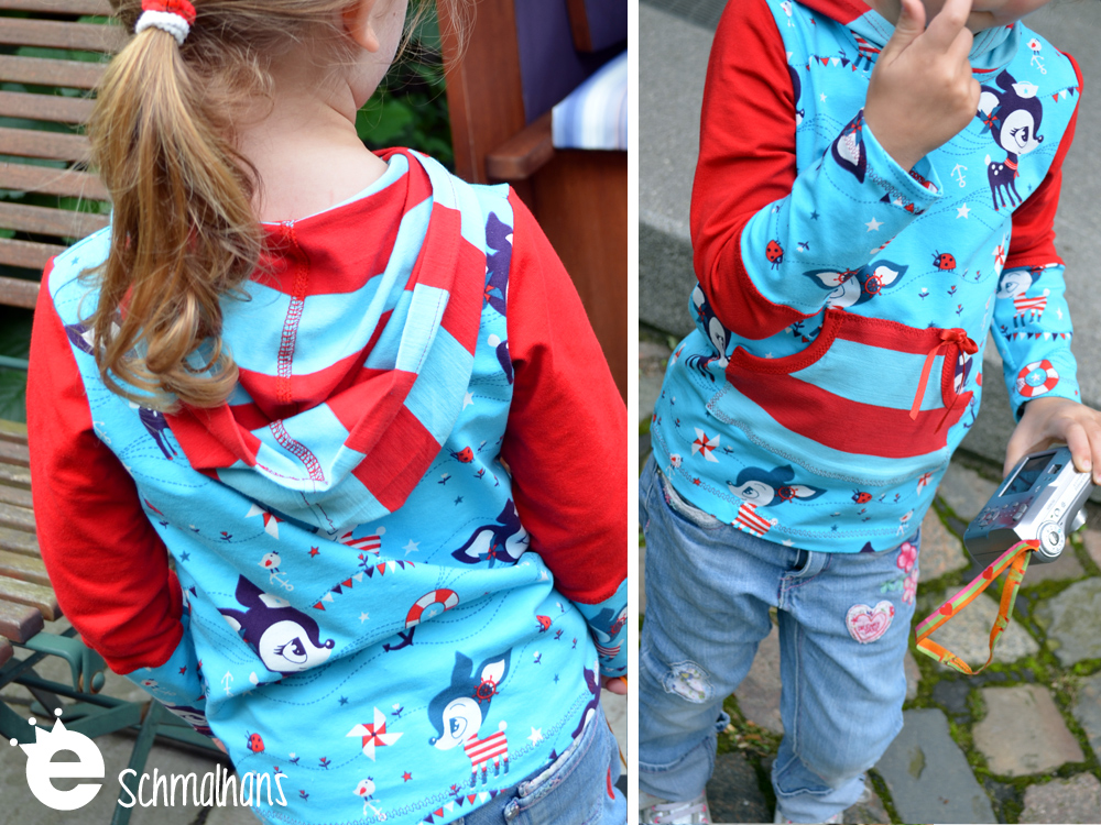 Kapuze und Bauchtasche können natürlich auch weggelassen werden.