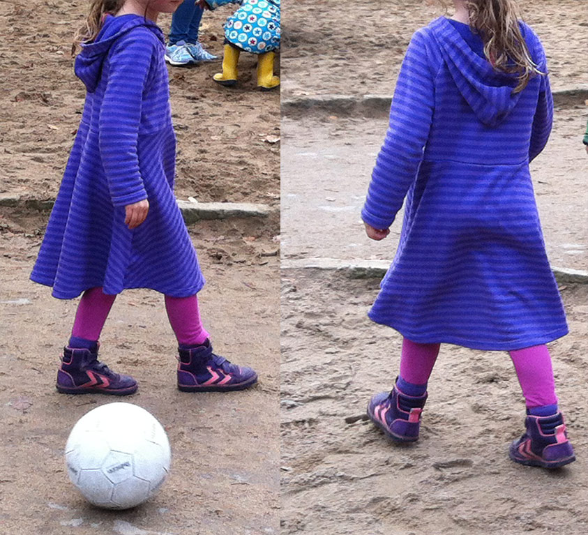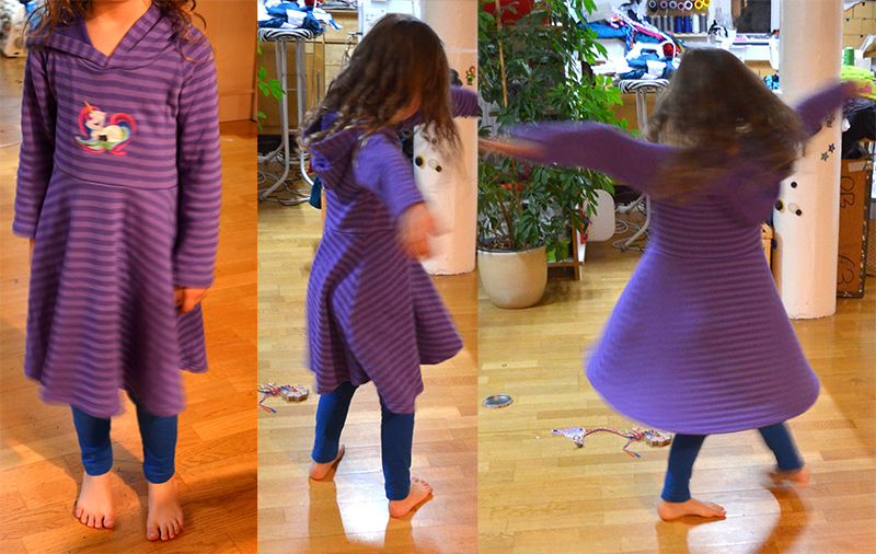 Das lila Einhornkleid gefiel jedenfalls so gut (und scheint auch so gemütlich zu sein), dass gleich noch ein zweites Kleid nach dem Schnitt her musste.