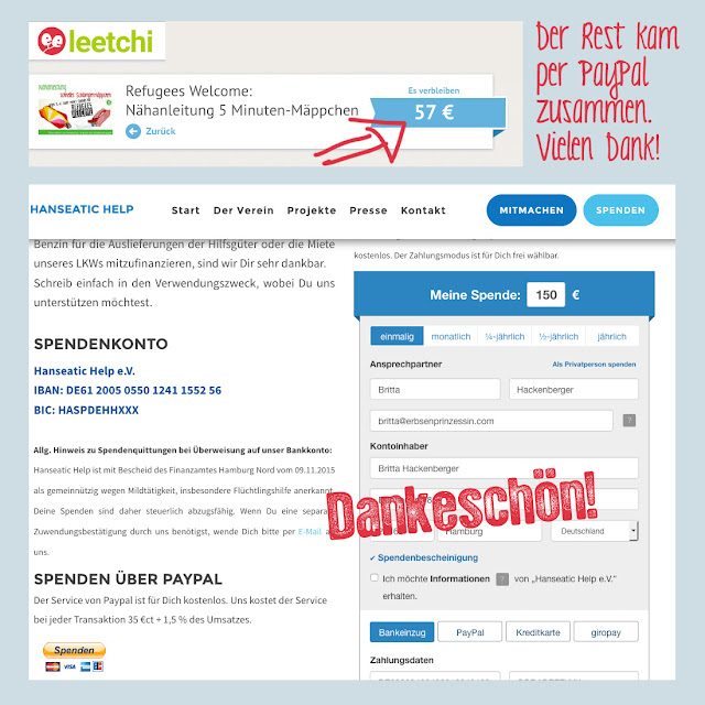 Diese hab ich noch um die Paypalgebühren und den Differenzbetrag aufgestockt, so dass ich jetzt 150€ an Hanseatic Help überweisen konnte. Wie schön!