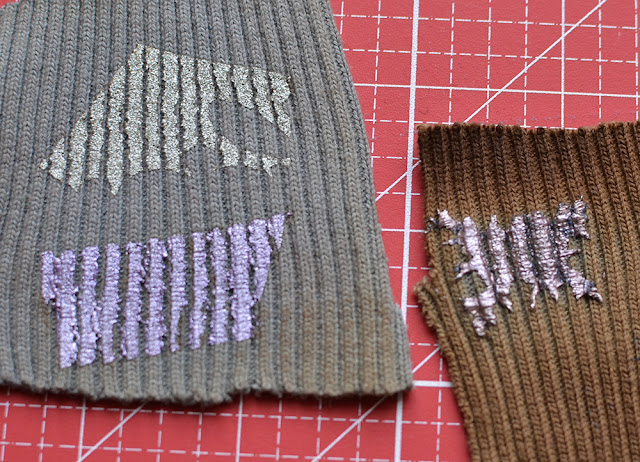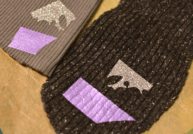 Metallische Flexfolie (ich hatte sie von von Plott-Liesl) und Glitzer-Flexfolie* (aufbügelbare Plotterfolie), grobes Bündchen und Strickstoff.