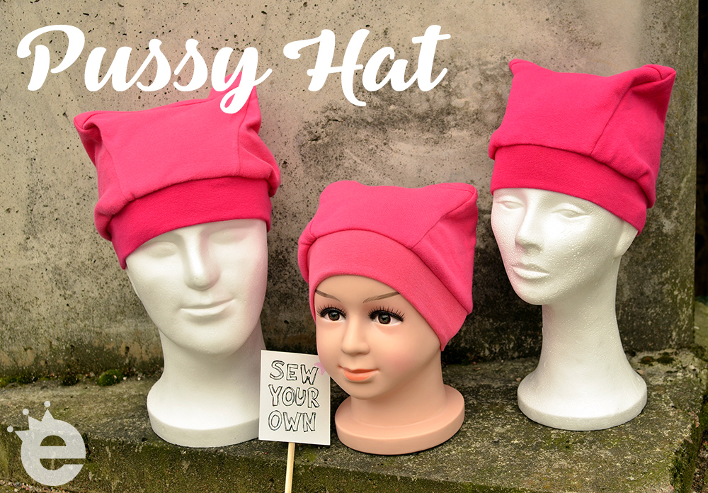 Vielleicht braucht ja jemand noch schnell so eine pinke Mütze mit Katzenohren zum Women’s Day am 8. März und mag lieber nähen statt stricken oder häkeln?